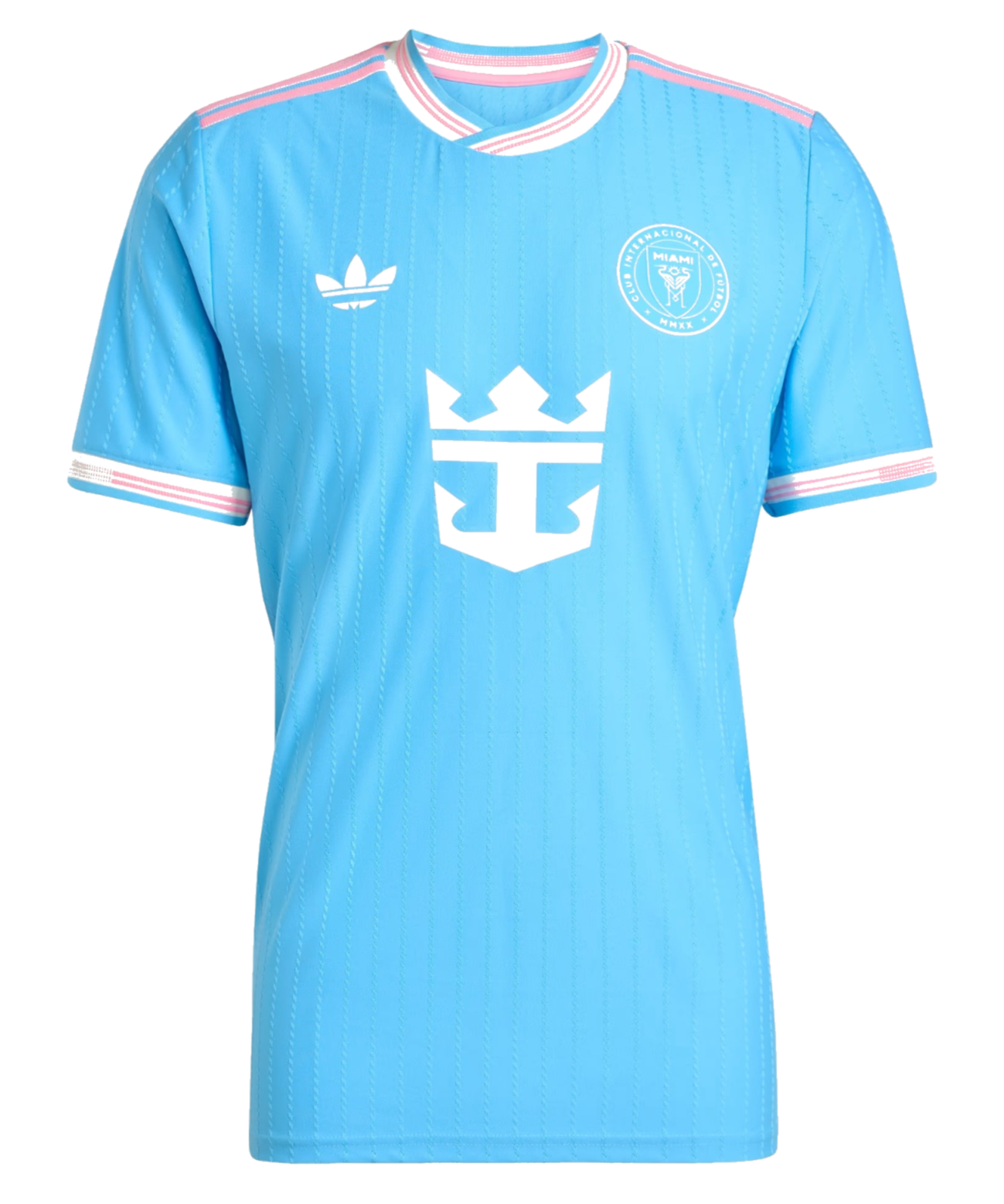 La tercera camiseta del Adidas Club Internacional de Fútbol Miami 2025 tiene un color principal bastante similar al verde turquesa del tercer uniforme de la temporada pasada. Sin embargo, esta vez, tiene una base azul cielo, oficialmente "Semi Blue Burst". La tercera camiseta del Inter Miami 2025 es predominantemente azul con cuello y puños blancos, con ribete rosa. La tercera equipación del Inter Miami 2025 presenta el logotipo del trébol, lo que podría ser una señal de que Adidas utilizará el logotipo del trébol para la tercera equipación de la MLS 2025.