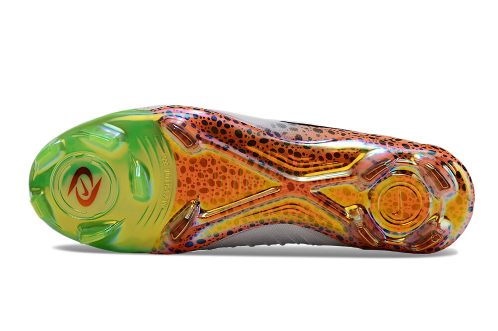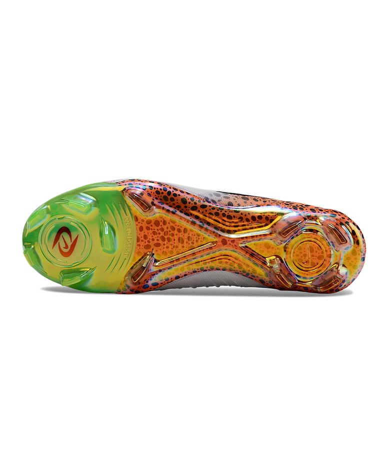 Combina varios tipos de tacos en busca de traccionar y rotar en todas las direcciones y se define como una suela FG. Tacos cónicos y en forma de arista de 3 puntas se combinan entre sí en una placa en la que encontramos un puente estabilizador en forma de X en la zona central. Esto sirve para que los tacos no se entierren en los cambios de direccion previniendo lesiones.